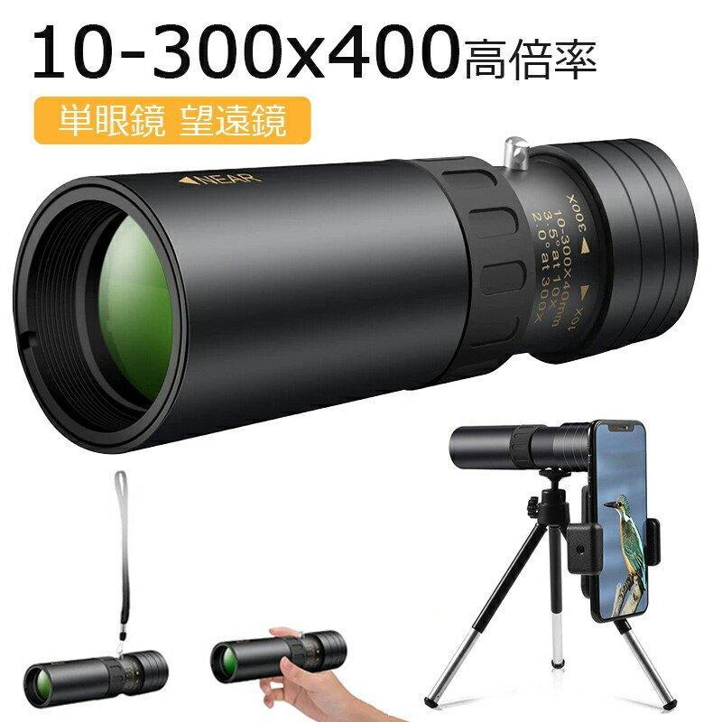 ■単眼鏡 望遠鏡 高倍率 10-300*40mm HD解像度 スマートフォン ミニ 望遠鏡 カメラ 携帯電話 アダプタ 三脚 防水霧 観戦 観察 運動会