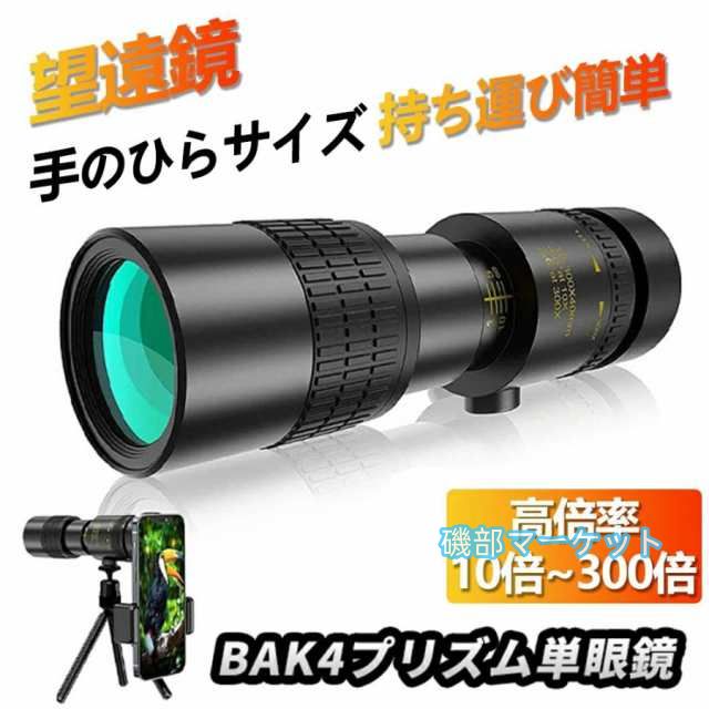 単眼鏡 望遠鏡 高倍率 10-300*40mm HD解像度 スマートフォン ミニ 望遠鏡 カメラ 携帯電話 アダプタ 三脚 防水霧 観戦 観察 運動会