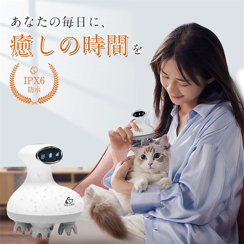 ■ヘッドマッサージャー 電動頭皮ブラシ 頭皮マッサージャー ヘッドブラシ 4つの洗顔ブラシ付き 頭皮ケア 頭皮エステ 高品質 抗菌ABS 【PL