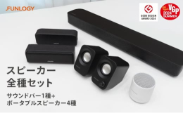 FUNLOGYのスピーカー5種セットです。テレビの音をまるで映画館のように変えるサウンドバー、モニターの音が別物になるスピーカー、お風呂やお出かけには防水のポータブルスピーカーなど、生活のあらゆる場面で音や音楽を楽しめます。※画像はイメージです。※接続方法、詳細内容、その他の問い合わせは「FUNLOGY 製品名 よくある質問」を検索してご確認下さい。