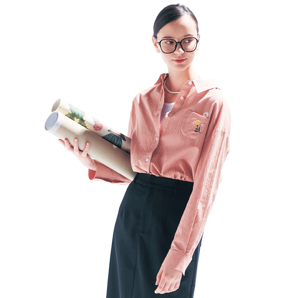 ーデザイン・スタイリングー・春らしいピンクカラーのシャツ・後ろにも襟とボタン付きで、抜き襟のこなれた着こなしが簡単にできる・後ろ襟のボタンで抜き加減を調節OK・左胸ポケットにお花の刺繍・羽織りとしても活躍ー素材ー・身生地は綿100%素材でやさしい着心地ミニラボパリのデザイナーが生み出す大人かわいい世界「mini labo(ミニラボ)」は、パリで活躍する2人のクリエイター、キャロリーヌとセリーヌによるクリエイションブランド。パリの気分が詰まった、華やかで夢のあるミニラボワールドをつくりあげています。