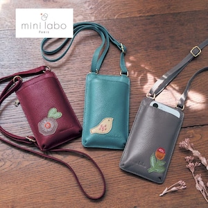 ーデザイン・スタイリングー・ミニラボデザインのアップリケが愛らしい・長く使うほどに愛着が湧く・ミニラボの型押しロゴ入りー素材ー・シボのある柔らかな牛革製ー機能ー・ショルダーは長さ調節OK・スマホが出し入れしやすい・サイドに小銭入れポケット・ICカードが入れられる背面ポケットミニラボパリのデザイナーが生み出す大人かわいい世界「mini labo(ミニラボ)」は、パリで活躍する2人のクリエイター、キャロリーヌとセリーヌによるクリエイションブランド。パリの気分が詰まった、華やかで夢のあるミニラボワールドをつくりあげています。