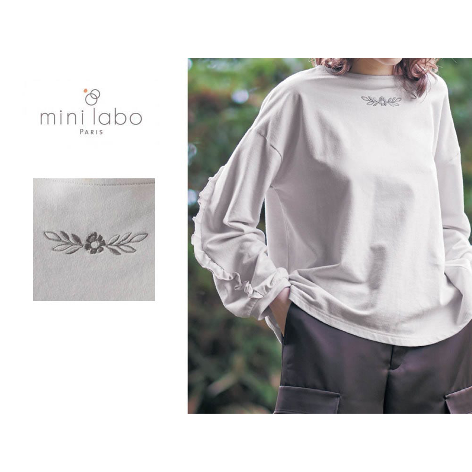 ーデザイン・スタイリングー・ふんわりしたバルーン袖にシックなカラーの刺繍がアクセント・袖口はリブでたくし上げやすい・裾は両脇からラウンドデザインでスッキリ見える・両袖にコトリとお花の刺繍入りー素材ー・着やすい裏毛カットソーミニラボパリのデザイナーが生み出す大人かわいい世界「mini labo(ミニラボ)」は、パリで活躍する2人のクリエイター、キャロリーヌとセリーヌによるクリエイションブランド。パリの気分が詰まった、華やかで夢のあるミニラボワールドをつくりあげています。