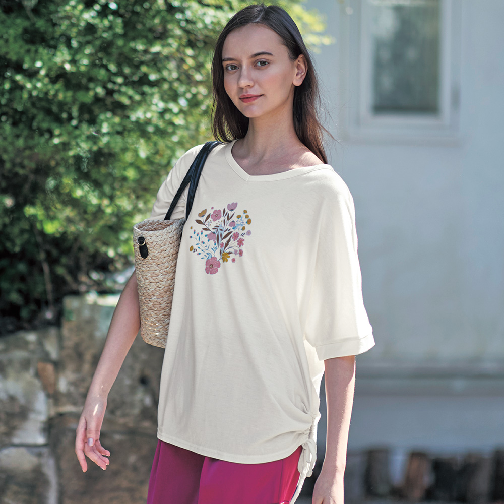ーデザイン・スタイリングー・ボタニカルなプリントが女性らしい・デイリーに着やすくて1枚で決まる・インでも幅広く着回せる・ゆとりのある七分袖で、フレアなシルエットなので楽な着心地ー素材ー・身生地は綿100%のスムース素材・着やすいカットソー素材ミニラボパリのデザイナーが生み出す大人かわいい世界「mini labo(ミニラボ)」は、パリで活躍する2人のクリエイター、キャロリーヌとセリーヌによるクリエイションブランド。パリの気分が詰まった、華やかで夢のあるミニラボワールドをつくりあげています。