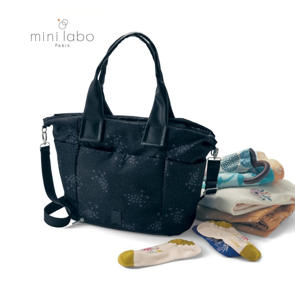 ーデザイン・スタイリングー・一見シックな黒の無地に見えて、繊細なブーケのプリントが入ったデザインが素敵・1~2泊の旅行やジムにもおすすめー素材-・軽いポリエステル素材・合皮の持ち手が手にやわらかになじむー機能ー・ショルダーが外せる2wayで便利・背面のファスナーを開くと、キャリーケースのバーに固定して持ち運べる・左右にポケット付きミニラボパリのデザイナーが生み出す大人かわいい世界「mini labo(ミニラボ)」は、パリで活躍する2人のクリエイター、キャロリーヌとセリーヌによるクリエイションブランド。パリの気分が詰まった、華やかで夢のあるミニラボワールドをつくりあげています。