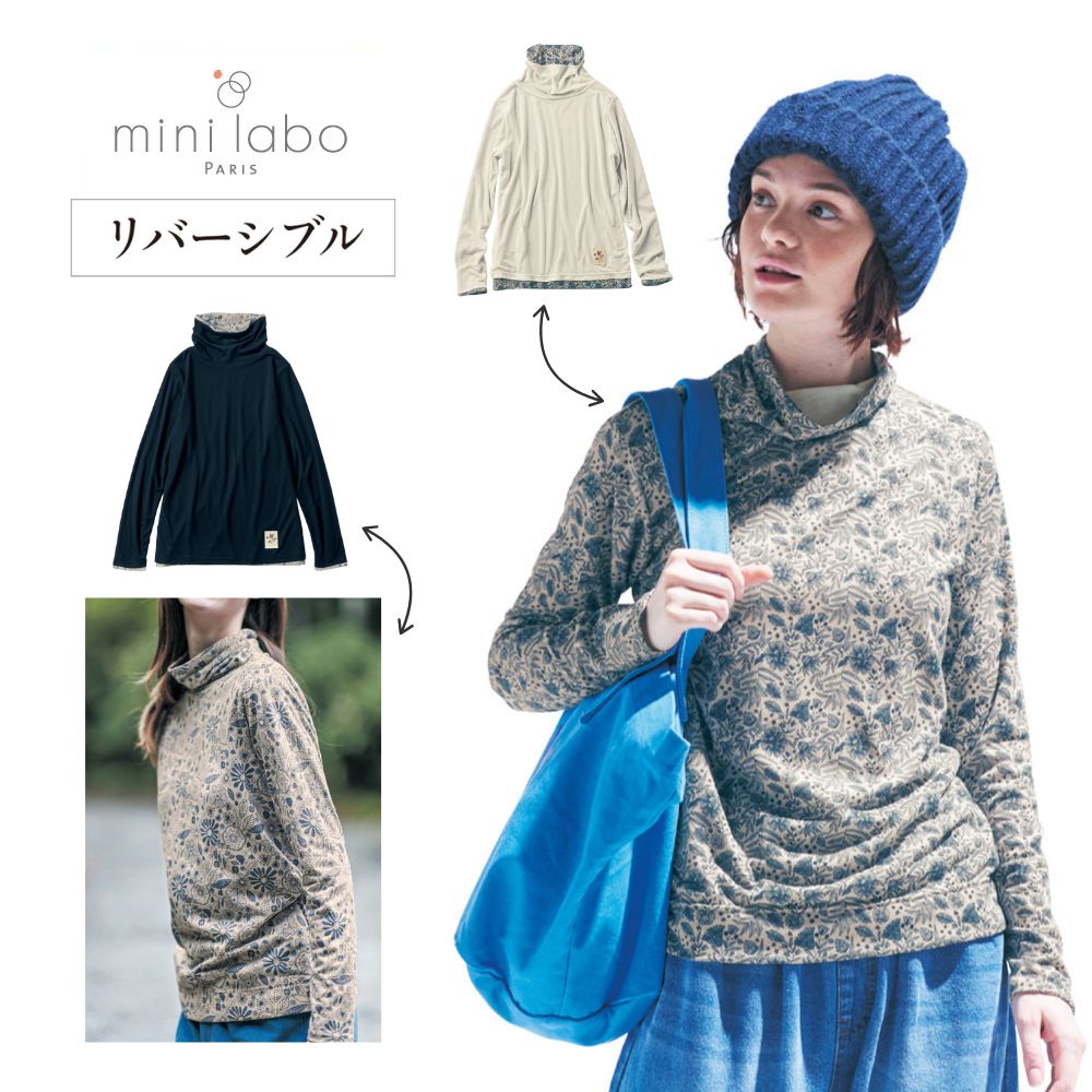 ■【ミニラボ/mini labo】リバーシブル長袖タートルネック 「ミニラボ」