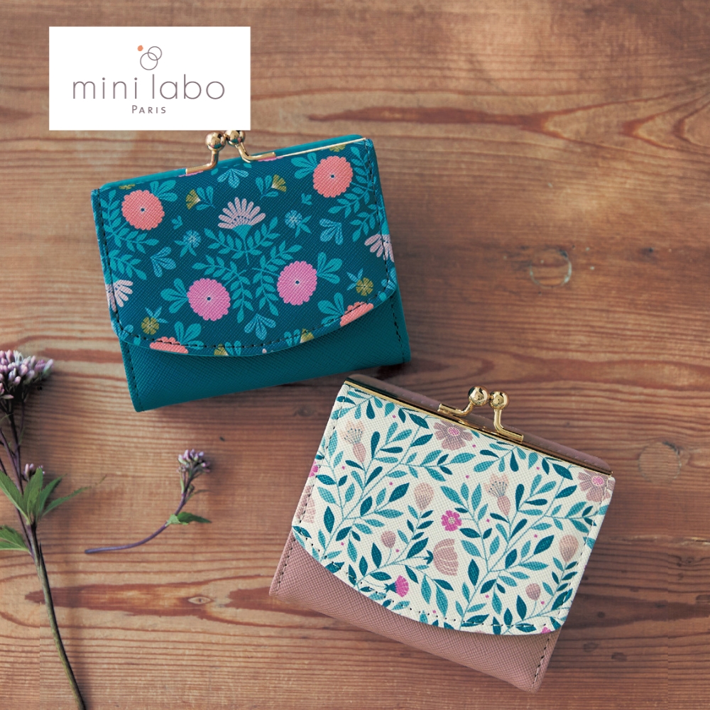 ーデザイン・スタイリングー・手に持ちやすい三つ折りタイプのミニ財布・小さめのバッグにもすっきり収まるサイズ・ボタニカルデザインが華やか・同シリーズのカードケース(別売)と2個持ちもおすすめー素材ー・シボ感のある合皮素材ー機能ー・コンパクトながらお札やカード、レシート収納などにも使えるポケット付き・小銭入れはがま口タイプでサッと取り出せるミニラボパリのデザイナーが生み出す大人かわいい世界「mini labo(ミニラボ)」は、パリで活躍する2人のクリエイター、キャロリーヌとセリーヌによるクリエイションブランド。パリの気分が詰まった、華やかで夢のあるミニラボワールドをつくりあげています。