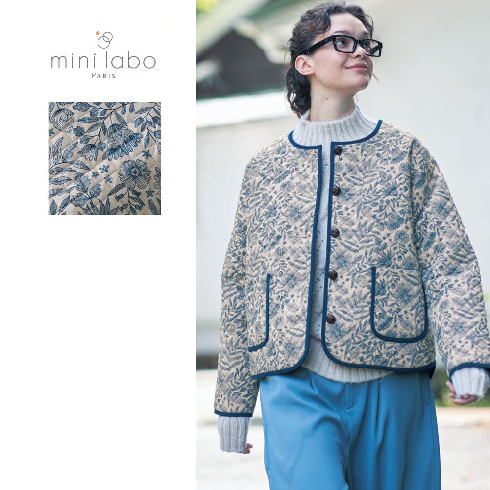 ーデザイン・スタイリングー・大人っぽいボタニカルプリントの総柄・羽織るだけで印象的な装いに・合わせるアイテム次第できれいめにもカジュアルにもロングシーズン着回せる・バスケットボタンとコーデュロイのパイピングがアクセント・前後差のあるラウンドタイプの裾もかわいいー素材ー・うっすら中わた入りのキルティング・身頃の裏地は綿混素材・袖裏はすべりの良いタフタ素材で着脱もスムーズミニラボパリのデザイナーが生み出す大人かわいい世界「mini labo(ミニラボ)」は、パリで活躍する2人のクリエイター、キャロリーヌとセリーヌによるクリエイションブランド。パリの気分が詰まった、華やかで夢のあるミニラボワールドをつくりあげています。