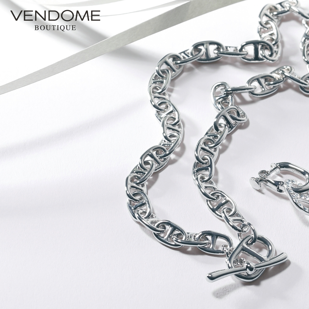 ―デザイン・スタイリング―・上品で繊細な美しさが人気の「ヴァンドームブティック」から、 大人の装いに今年らしさを添えるチェーンアクセを厳選・インパクトのある大きめサイズがトレンド・チョーカーのようなショートタイプで、 マンテル金具部分は前後どちらでもOK