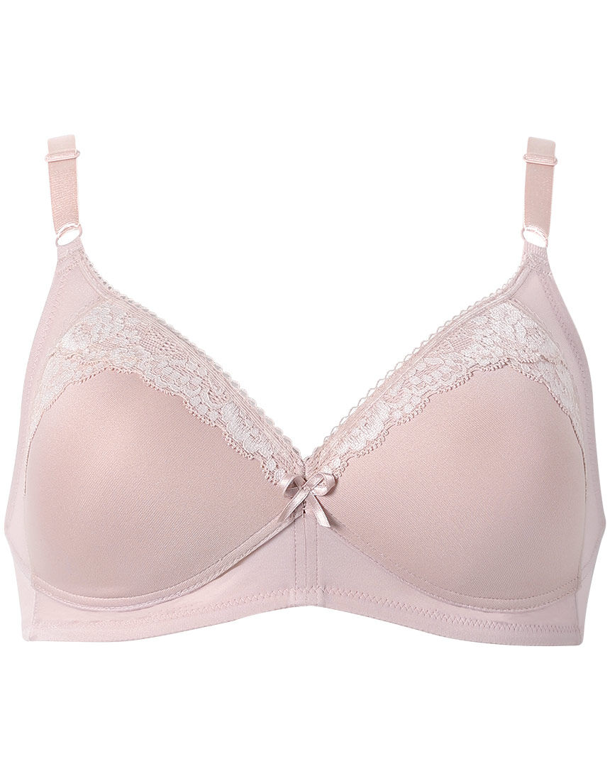 ●やさしくバストにフィット カップは、ソフトウレタン素材を使用●アンダー部分はしめつけ感が少なくラク アンダー部分は、フルストレッチ構造でラクなつけごこち●調整しやすいストラップ ストラップは前アジャスターで調整しやすいやさしいつけごこちを追求したベーシックなノンワイヤーブラ。ソフトウレタン素材のモールドカップが自然なまるみを演出します。アウターをすっきり着こなせる、つるんとしたシンプルなカップデザイン。カップ上辺にあしらった編みレースと前中心のワンポイントで上品な雰囲気に。