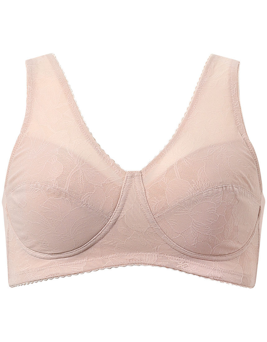 ■脇すっきり・自然なまる胸キープ/カップ肌側綿混で肌あたりが優しい【レースタイプ】 フルカップブラ(ノンワイヤーブラ)