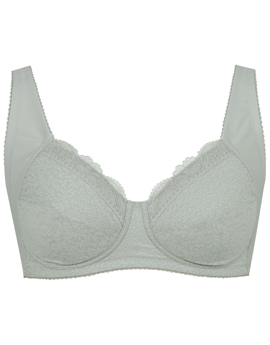 ●バストの脇流れをおさえてすっきり ストラップがカップ脇から一体になった構造のサイドストレッチ仕様と二重パワーネット仕様により、バストの脇流れをサポート●アンダー部分はしめつけ感が少なくラク アンダー部分はフルストレッチ構造でラクなつけごこち●肩にやさしい 幅広で伸縮性のある生地をストラップに使用し、肩へのくいこみを軽減●カップはやさしい肌ざわり カップ肌側に綿混素材を使用※環境に配慮した再生糸混のレースを使用
