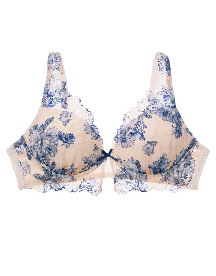 ■【ノンワイヤー】下厚カップで盛り胸メイク!フラワープリントレースノンワイヤーブラ ノンワイヤーブラ