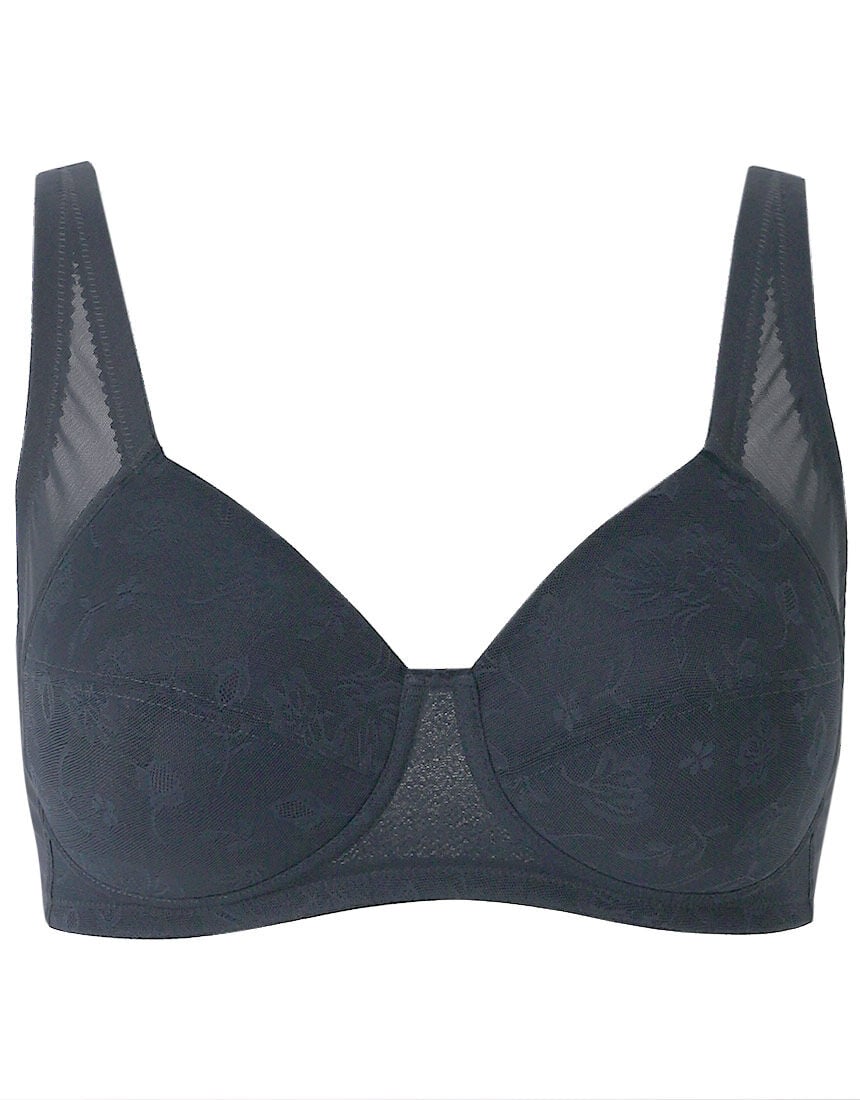 ●バストにぴったりフィット カップ周囲のストレッチ素材が、バストをすっぽり包んで美しいシルエットに●アンダー部分はしめつけ感が少なくラク アンダー部分は、フルストレッチ構造でラクなつけごこち●肩にやさしい 幅広ストラップを使用することで、肩にくいこみにくい●やさしい肌ざわり カップ肌側、バックは綿混素材を使用※環境に配慮した再生糸混のレースを使用