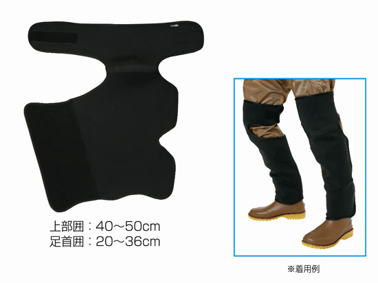 ウェーダーの上から着用することによりヒザ・スネ・フクラハギ等、穴の開き易い部分をしっかりガード2mm厚クロロプレンスポンジ使用で保温性抜群。ウェーディング時の水抵抗も軽減できるヒザ部立体裁断とベルクロによりぴったり足にフィット●素材:ジャージ+CRスポンジ(2mm厚)+ジャージ●カラー:ブラック