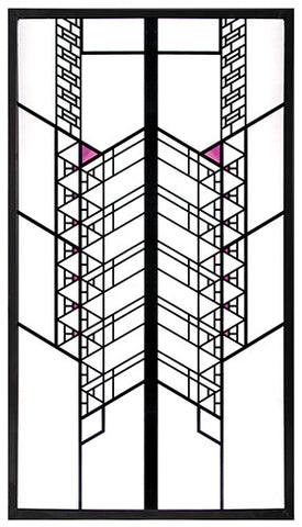 ■即納!フランクロイドライト財団公認ホーリーホック ハウスデザインステンドグラス壁装飾吊り下げアート工芸木製ベース輸入品s