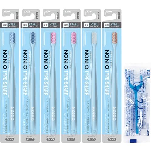 ■NONIO(ノニオ) ハブラシ TYPE-SHARP ふつう 極細毛 歯ブラシ セット 6本(※色は選べません)+Y字フロス付き