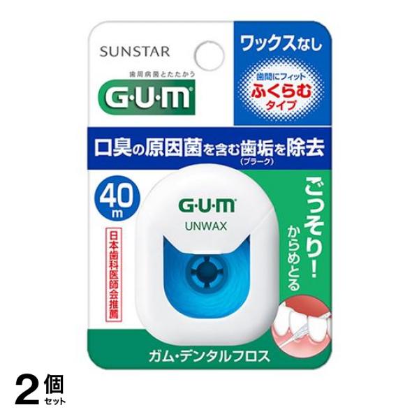 ■2個セット クーポン有 GUM ガム・デンタルフロス ワックスなし ふくらむタイプ 40m(定形外郵便での配送)