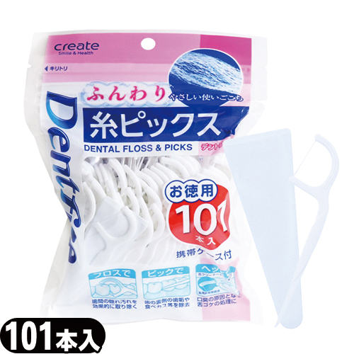 ■(あす着)(ネコポス)デントファイン(Dentfine) 糸ピックス ふんわり お徳用 101本入 (携帯ケース付) - 歯間の歯垢・食べカスの処理に欠か