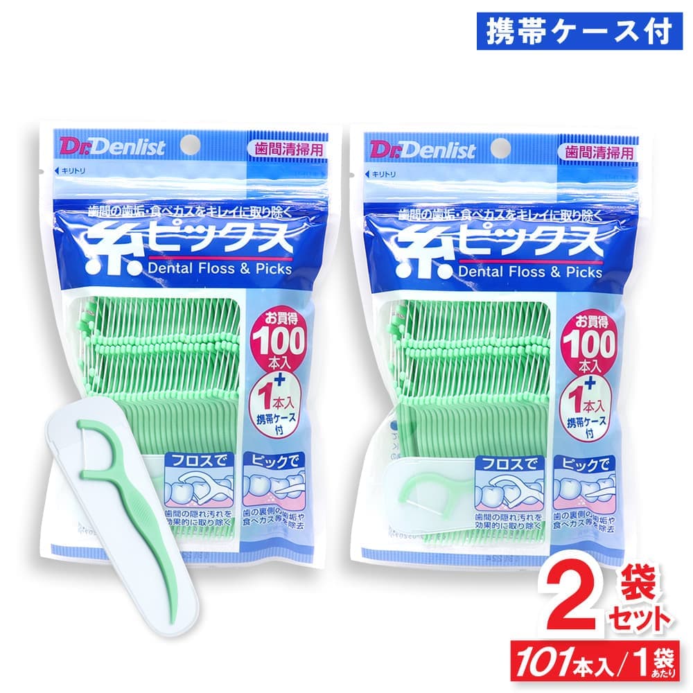 ■糸ピックス 101本入り ×2袋セット 携帯ケース付 歯間清掃用 デンタルフロス ピック