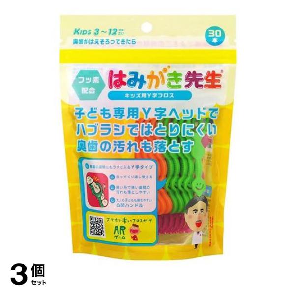 ■3個セット クーポン有 はみがき先生 キッズ用Y字フロス 30本入