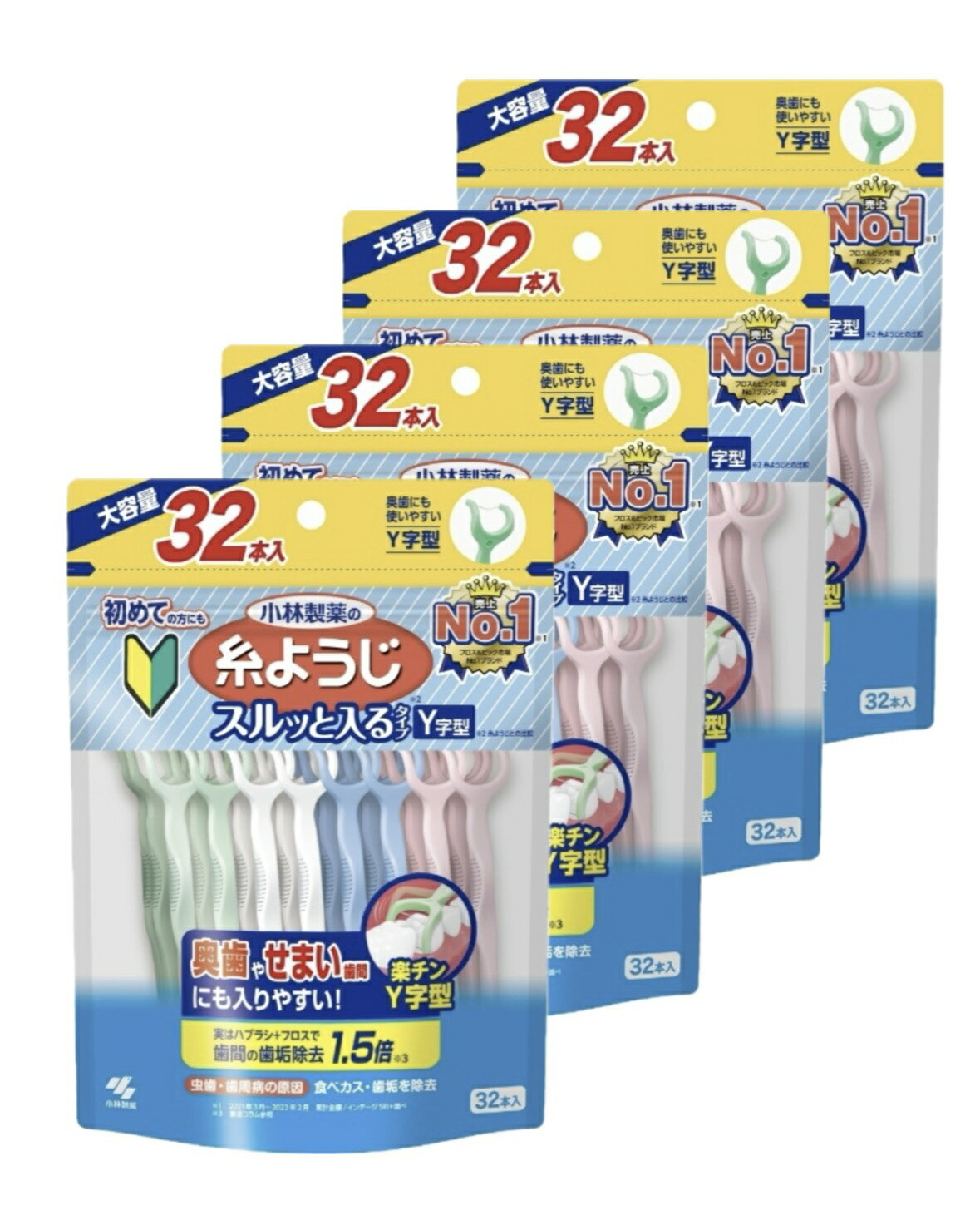 ■【まとめ買い4個セット】小林製薬 糸ようじ スルッと入るタイプ Y字型 奥歯にも入りやすい 大容量 32本入 ×4個