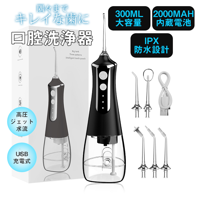 ■口腔洗浄器 歯間洗浄機 口内洗浄機 ジェットウォッシャー ウォーターフロス 歯茎ケア ノズル5本付き 3モード調節可能 大容量