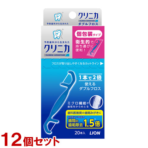■クリニカ ダブルフロス 20本入×12個セット 歯間ブラシ 衛生的で携帯に便利な個包装パック 歯間の歯垢除去 ライオン(LION)