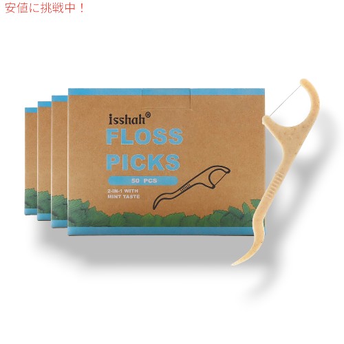 ■Isshah ナチュラル デンタルフロス ピック Natural Dental Floss Picks [持続可能、環境に優しい] 200個 (ミント)