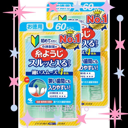 ■糸ようじ 【まとめ買い】小林製薬の スルッと入るタイプ 狭い歯間にも入りやすい フロス & ピック デンタルフロス 単品 60個 (X 2)
