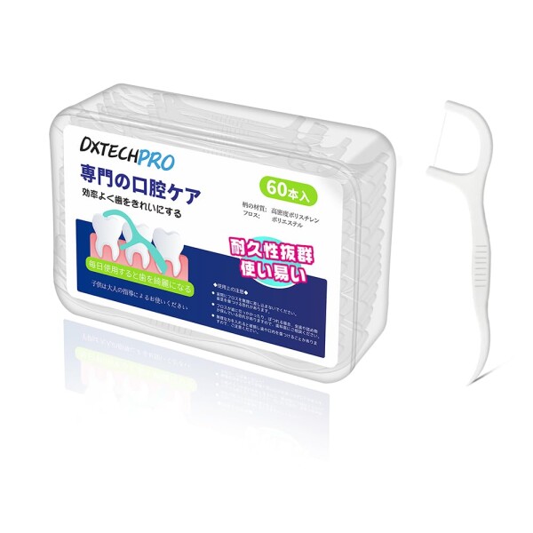 ■DXTECHPRO フロス 60本入 極細 デンタルフロス 細いフロス 狭い歯間用 入りやすい 初心者用 携帯用 大容量 歯間清掃