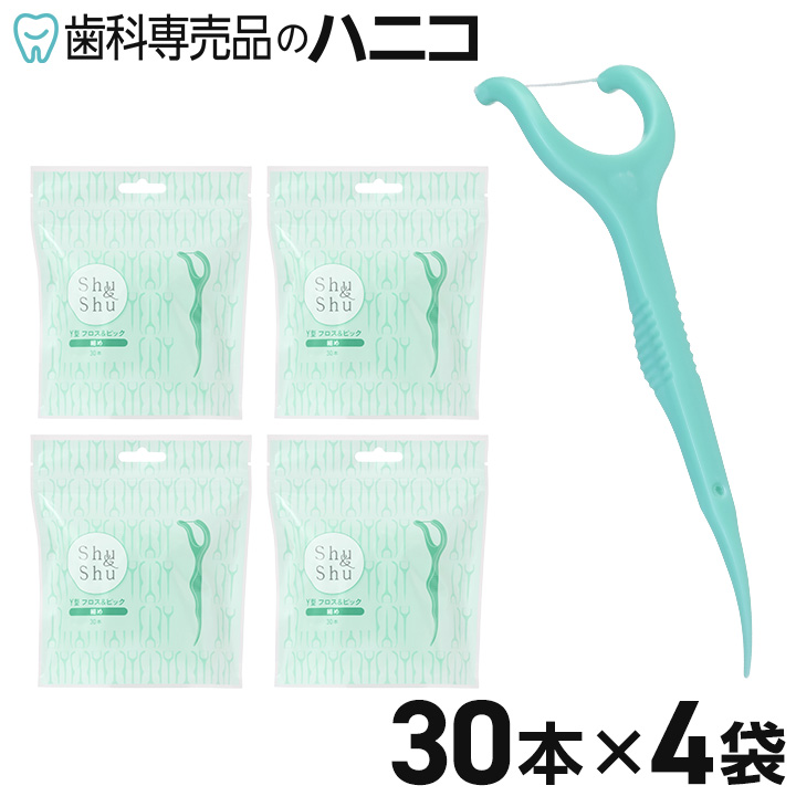 ■Shu & Shu Y型 フロス & ピック 120本 (30本×4袋) ハンドル付きフロス Y字型 ノンワックス 歯科専売品