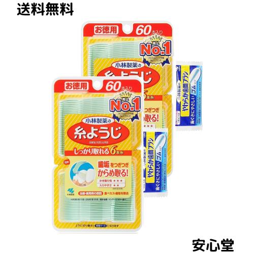◆商品名:糸ようじ 【まとめ買い】小林製薬の フロス&ピック デンタルフロス 60本 歯間清掃 (やわらか歯間ブラシ試供品付き) ×2個 小林製薬 【Ama