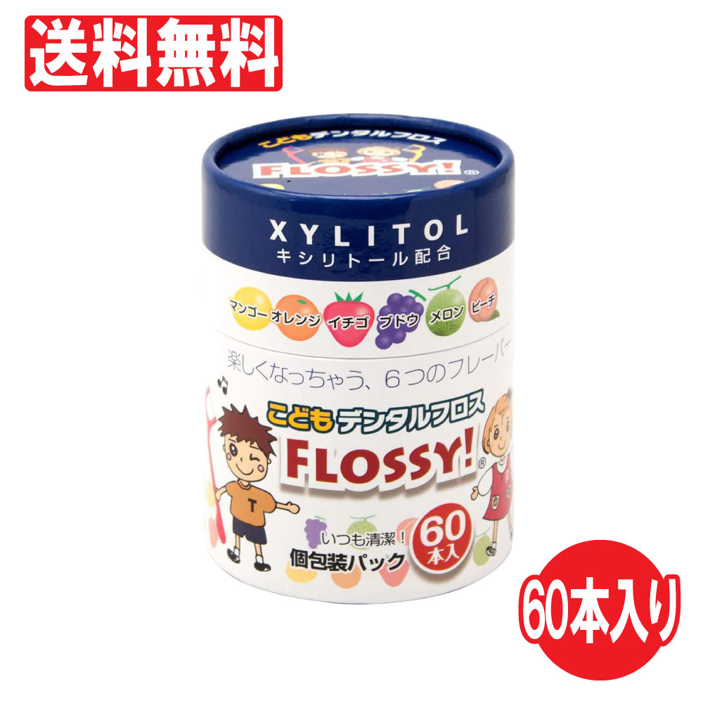 ■デンタルフロス こども用 フロス 60本 キシリトール配合 フロッシー 定形外送料無料