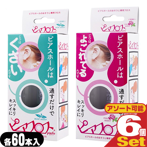 【ピアス穴専用おそうじフロス】ワンダーワークス ピアフロス ウォーター フロス (PIAFLOSS) x6個セット (ミント・ローズ2種組み合わせ自由)