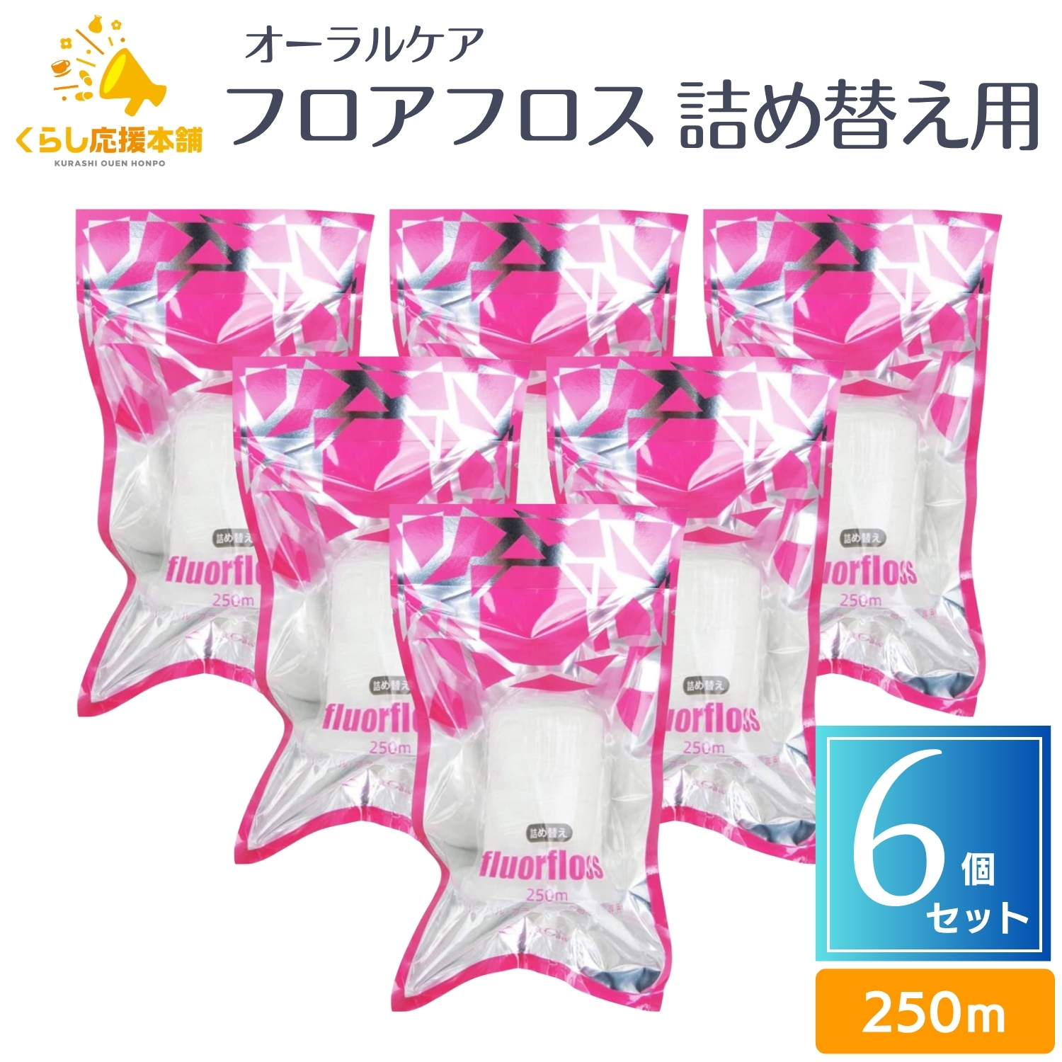 ■6個セット オーラルケア フロアフロス 250m 詰め替え用 送料無料 フロアフロス デンタルフロス フロス オーラルケア歯ブラシ たばこ や