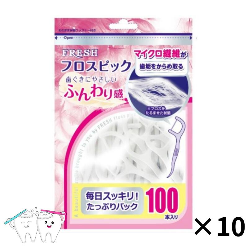 ■デンタルプロ フレッシュ フロスピック 100本入り 10個 送料無料 fresh デンタルフロス フロス 大容量 まとめ買い お得 最安 最安値