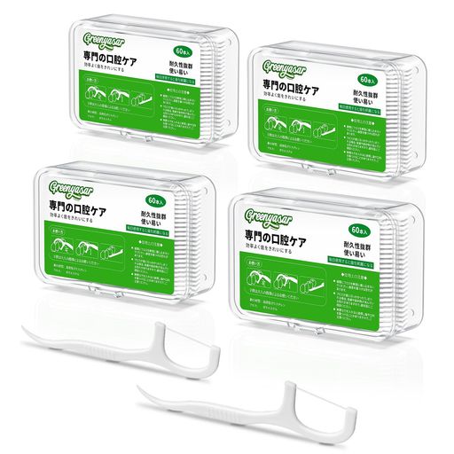 ■GREENYASAR フロス & スティック デンタルフロス 240本入 極細 フロス 歯 狭い歯間用 入りやすい 初心者 歯間清掃 大容量 携帯用 60本入