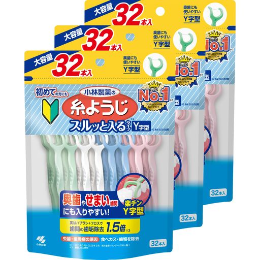 ■糸ようじ 【まとめ買い】小林製薬の スルッと入るタイプ Y字型 狭い歯間にも入りやすい フロス & ピック デンタルフロス 大容量 32本入× 3