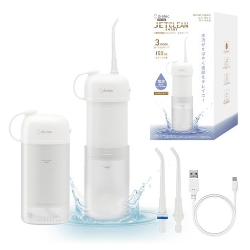 ■DRETEC(ドリテック)口腔洗浄器 携帯用 小型 ジェットクリーン スマート USB TYPE-C 強力洗浄 水流8段階 フロス IPX7 防水 150ML 充電式