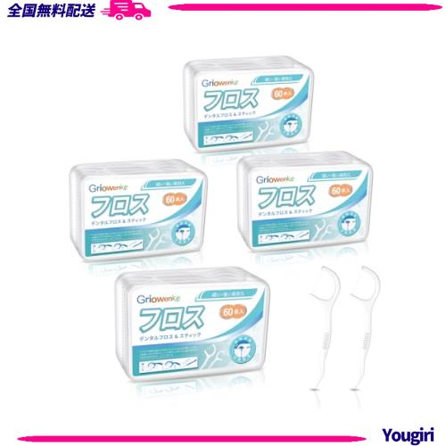 ■フロス 240本入 極細 デンタルフロス フロス 歯 狭い歯間用 入りやすい 初心者用 ?いフロス 歯間清掃 携?ケース (60本入/箱、4箱 ホワ