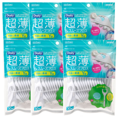■エビス 超薄 Y型 スムーズ フロス 30本×6【6個セット】 フロス 歯間 掃除 歯垢