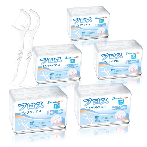 ■◆5個セット/キシリトール配合 フロス & ピック ミントフレーバー 50本入