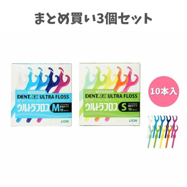 ■【まとめ買い3個セット】DENT.EX ウルトラフロス 10本入り フロス 太さ (S/M) デント イーエックス ウルトラフロス ライオン S10 M10