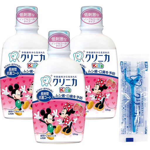 ■[医薬部外品]クリニカKID'Sデンタルリンス いちご 250ML 3個パック+フロス