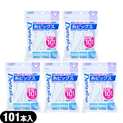 ■(あす着)(ネコポス)(歯間フロス)デントファイン(Dentfine) 糸ピックス お徳用 101本入 (携帯ケース付) x 5個セット (送料無料)