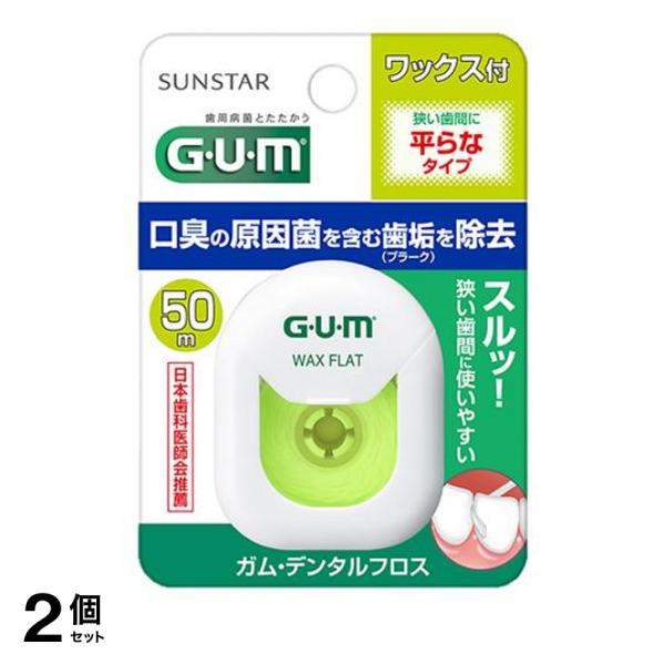 ■2個セット クーポン有 GUM ガム・デンタルフロス ワックス付 ?平らなタイプ 50m