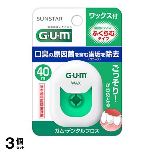 ■3個セット クーポン有 GUM ガム・デンタルフロス ワックス付 ふくらむタイプ 40m