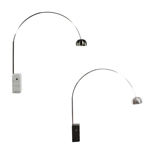 アルコランプ 照明 ライト おしゃれ 近代照明デザイン デザイナーズ カスティリオーニ兄弟 家具 インテリア リプロダクト CF601【お取り寄せ】 【DETAILS】 アッキーレとピエル・ジャコモのカスティリオーニ兄弟による1962年の作品であり、近代照明デザインの名作である。 重厚な大理石ベースからステンレスのアームが美しいアーチ(アルコ)を描く事から、この名前がつけられた。優雅に頭を垂れたその様は、リビングの顔となる風格があります。 シェードは2重構造となっており、外側のシェードが可動し、調節することで光の方向を変化させることができます。シェード上部の穴からも天井に向かって光が映し出され、幻想的な雰囲気を演出できます。4つの部材からなるアームは、それぞれが入れ子状になっており、配線を隠すスペースにもなっている。 E-comfortのアルコランプ ジェネリック製品では、大理石ベースにブラックとホワイトのバリエーションがございますので、インテリアに合わせたカラーコーディネートをお楽しみ下さい。