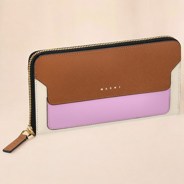 ■マルニ 長財布 レディース ブランド MARNI PFMOE11U09-LV520 ブラウン/ピンク/オフホワイト ウォレット 高級 おしゃれ プレゼント 実用的